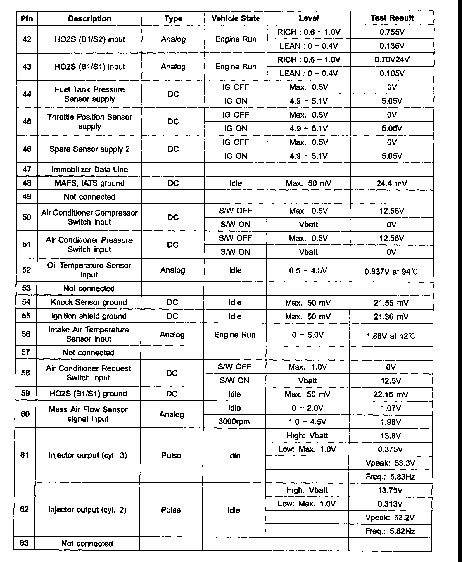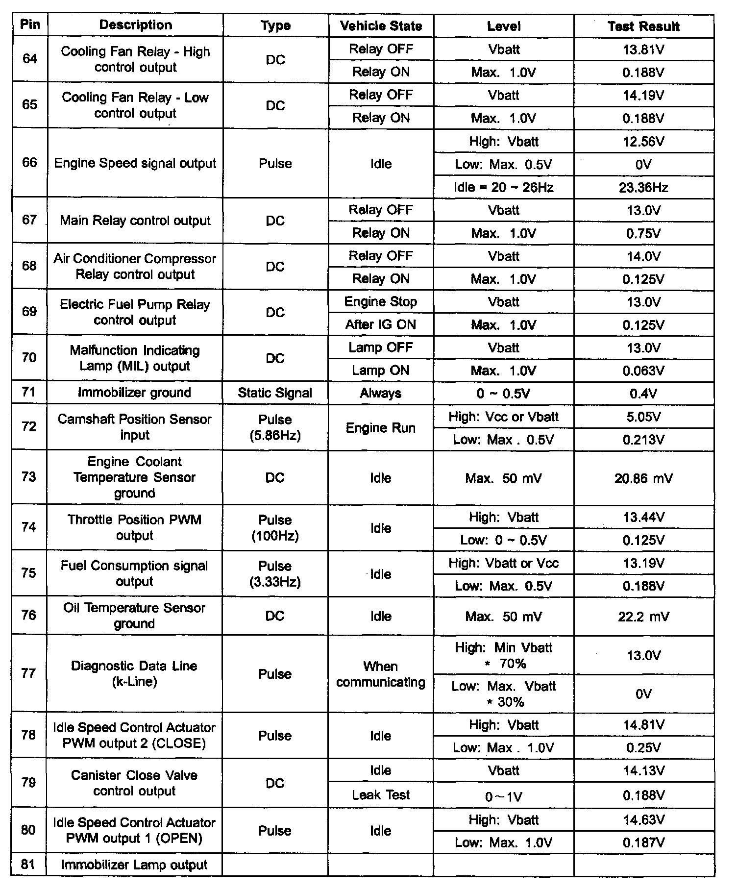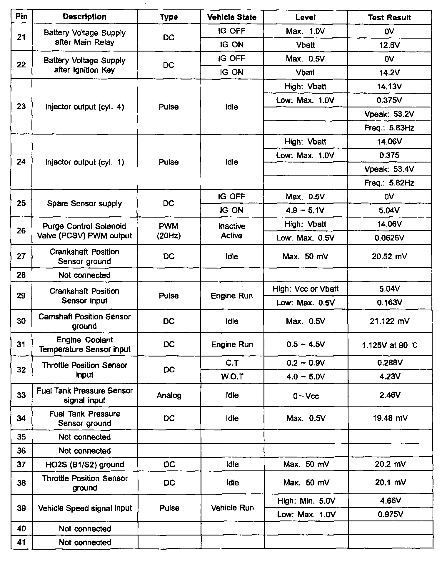 ECM Terminal Input/Output Signal