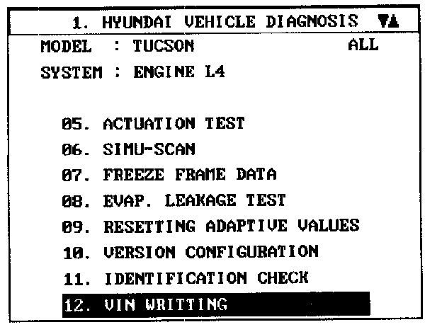 VIN PROGRAMMING PROCEDUREVIN (Vehicle Identification Number) is a number that has the vehicle's information (Maker, Vehicle Type, Vehicle Line/Series, Body Type, Engine Type, Transmission Type, Model Year, Plant Location and so forth. For more information, please refer to the group "GI" in this SERVICE DATA). When replacing an ECM, the VIN must be programmed in the ECM. If there is no VIN in ECM memory, the fault code (DTC P0630) is set.