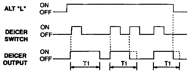 1. After ALT "L" ON, the windshield deicer is switched ON, the deicer relay output is ON for 20 minutes duration.