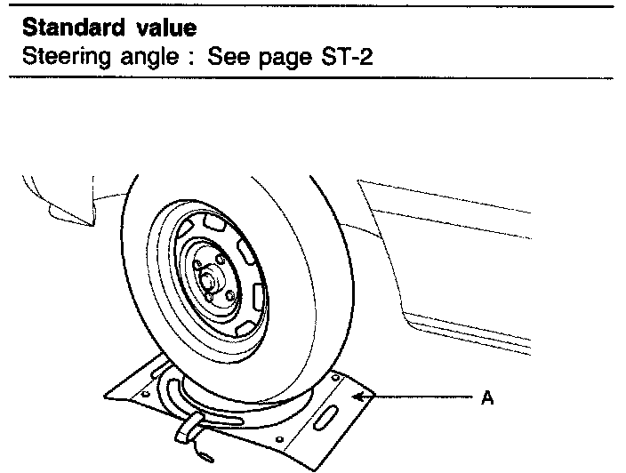 Place the front wheel on a turning radius gauge and measure the steering angle.