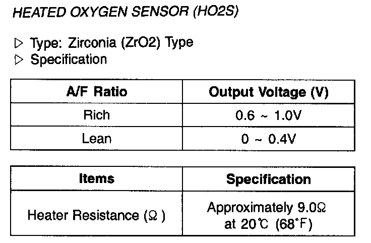 Heated Oxygen Sensor (HO2S) - Specification: