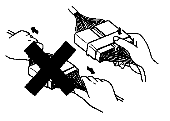 a. Never pull on the wiring harness when disconnecting connectors.