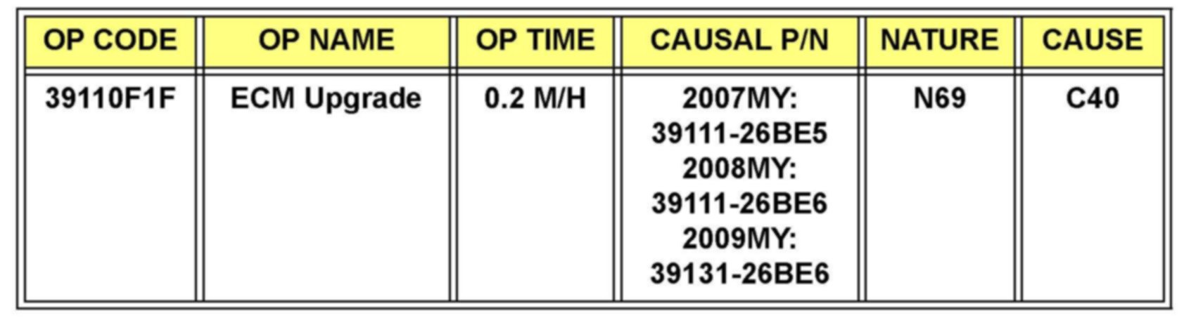 To verify the vehicle is affected, be sure to check the version of the vehicle's engine control unit ROM ID with reference to the ROM ID Information Table shown above before attempting to update the control unit software.