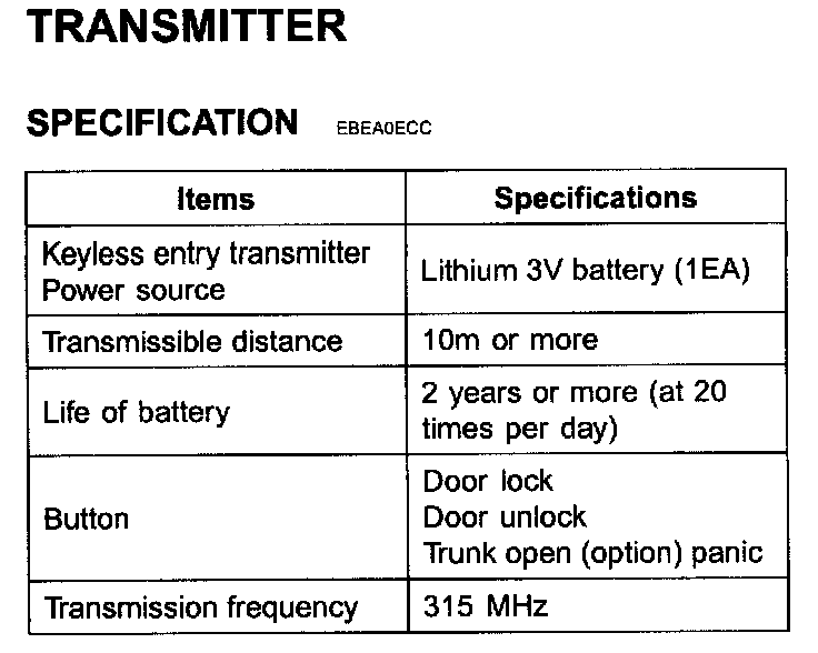 Keyless Entry Transmitter