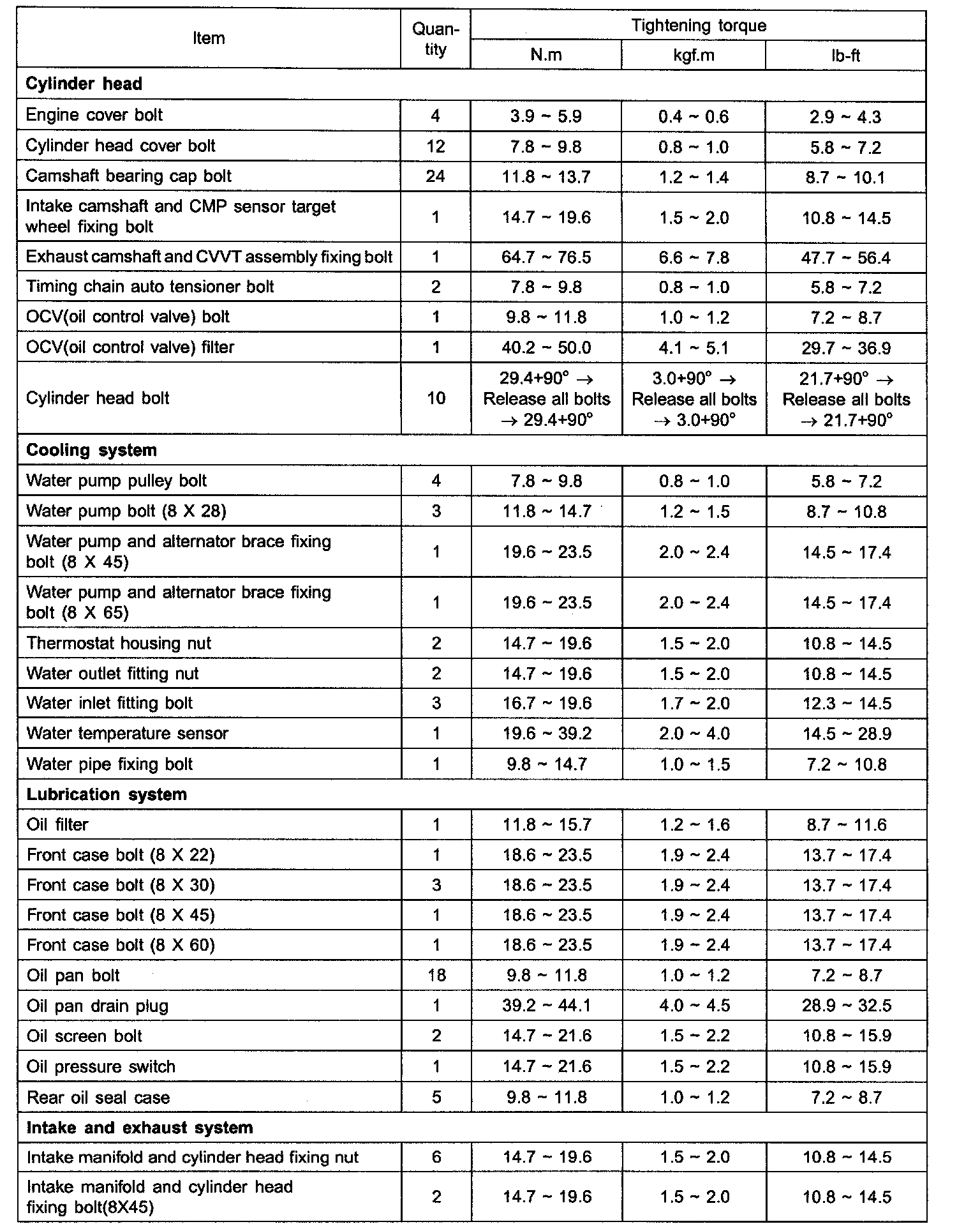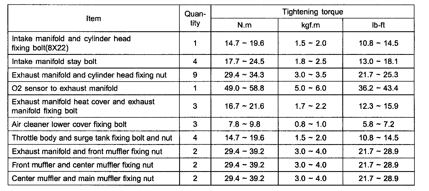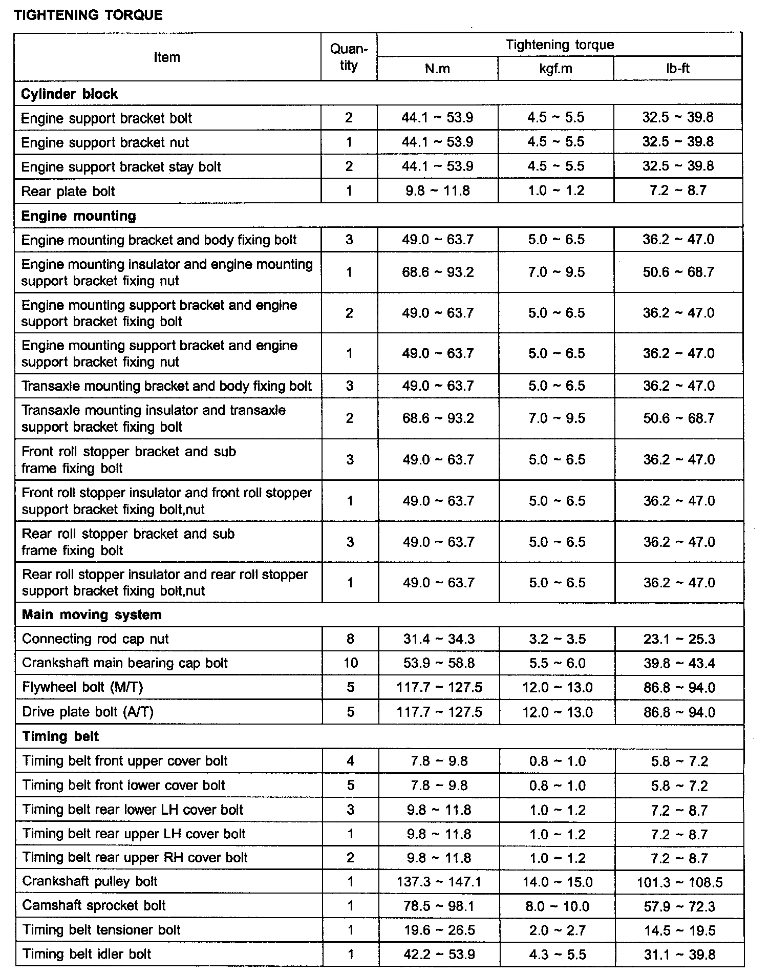 TIGHTENING TORQUE: