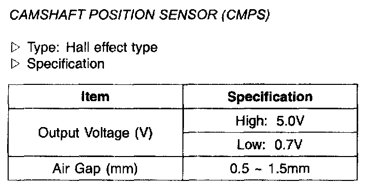 Camshaft Position Sensor(CMPS) - Specification: