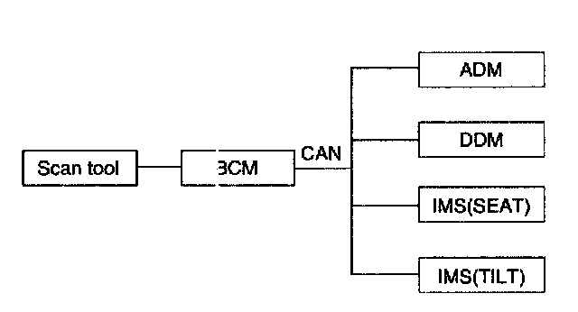 2. BCM receives the commands from scan tool and remits to DDM, ADM and IMS units with CAN. BCM receives the response from the units with CAN inversely, and feedback to scan tool with CAN.