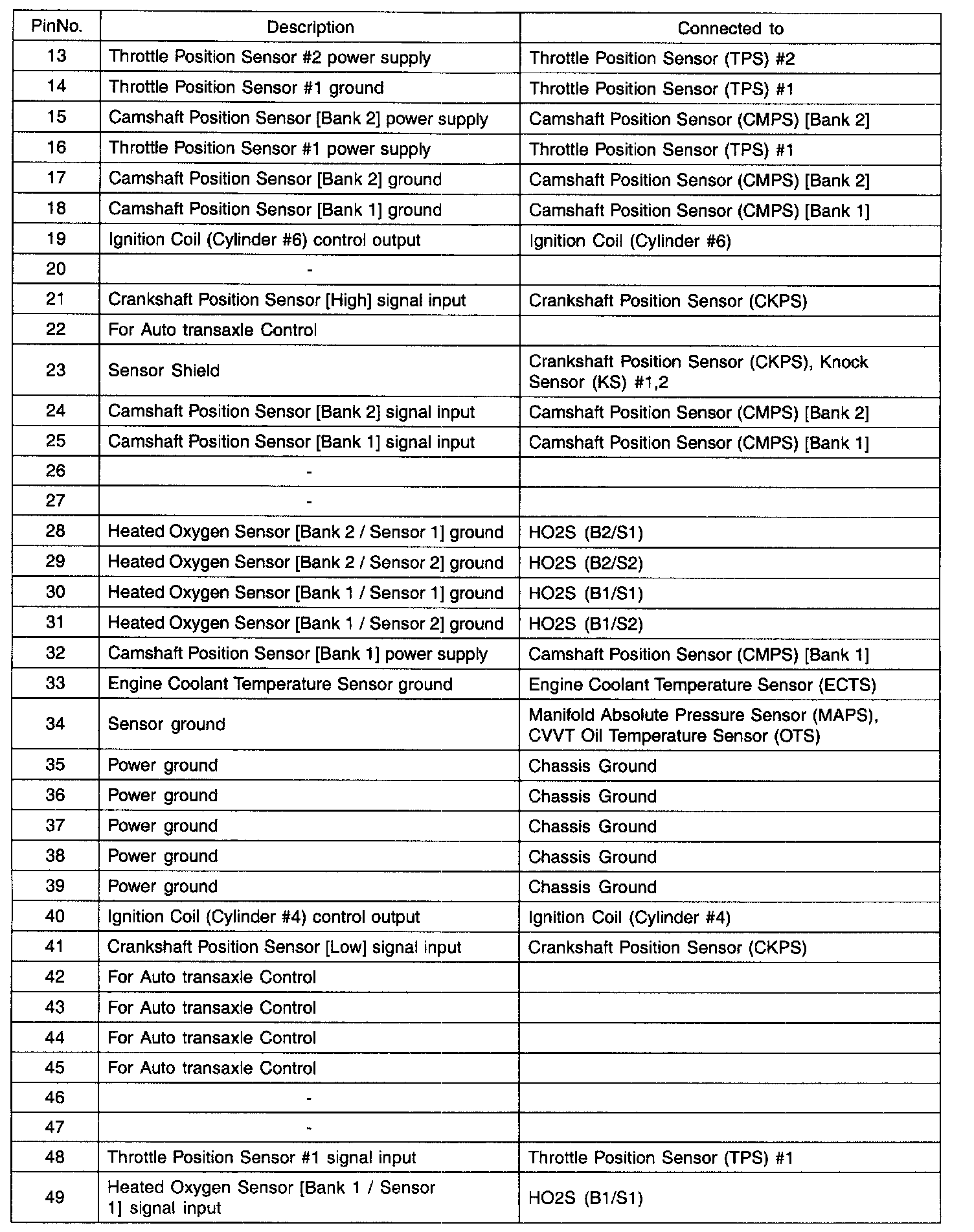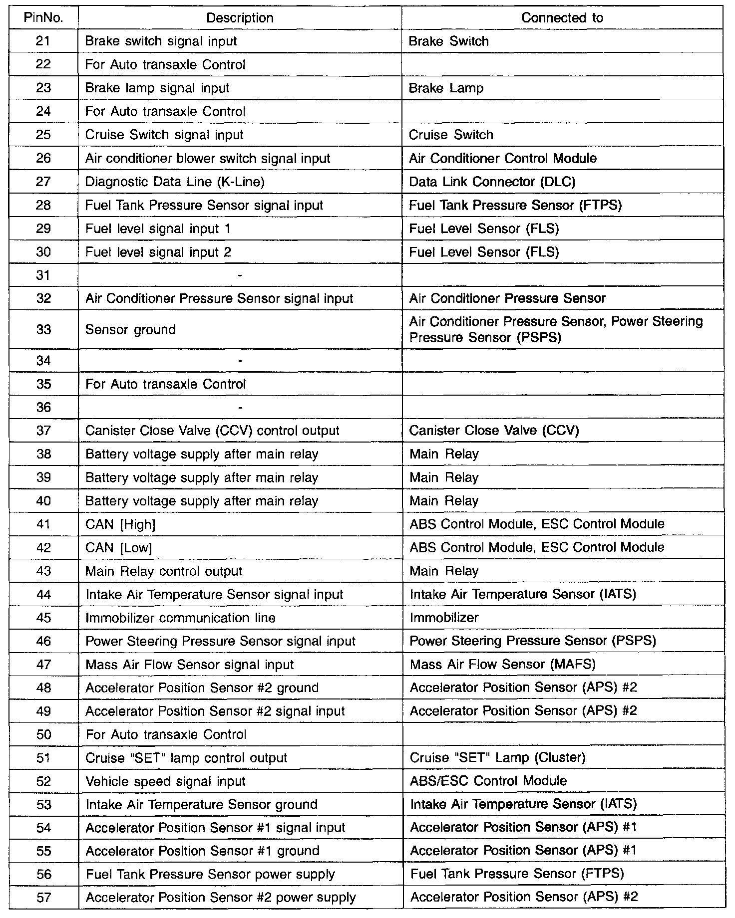 Home >> Hyundai >> 2007 >> Azera V6-3.3L >> Repair and Diagnosis >> Powertrain Management >> Computers and Control Systems >> Relays and Modules - Computers and Control Systems >> Engine Control Module >> Diagrams >> Connector Views
