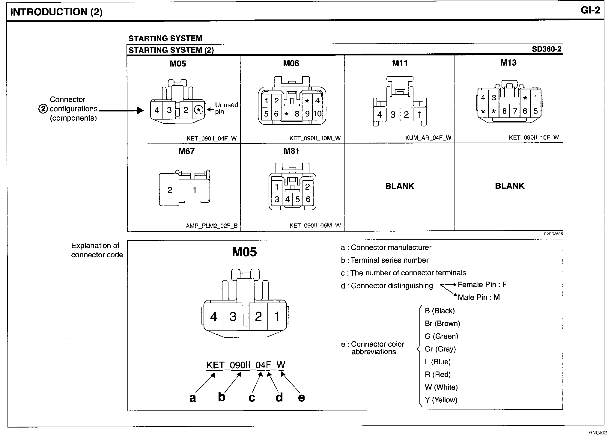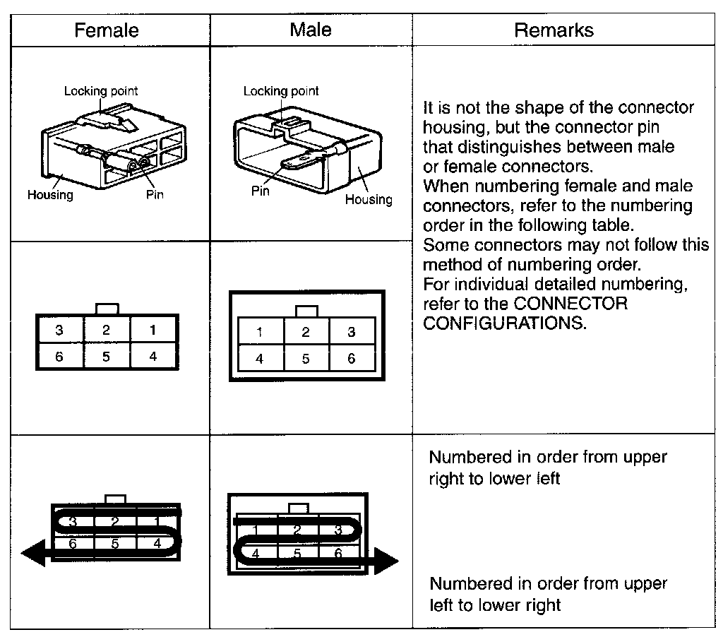 - It shows the front of the connector on the harness side when not to the harness connector. The terminal number on each connector can be obtained by following the pattern used in 05 connector view and numbering order. Unused terminals are marked with an asterisk (*).