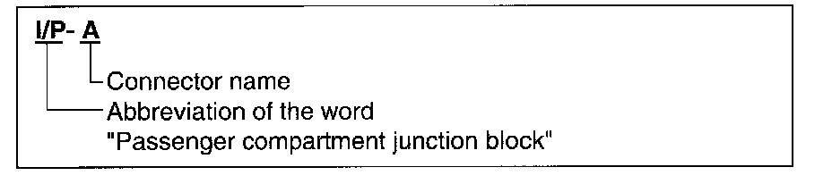 A junction block identification symbol consists of a wiring harness location classification symbol corresponding to a wiring harness location and number corresponding to the connector in the junction block.