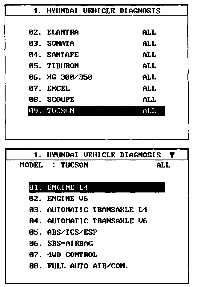 1. Select "Vehicle" and "Engine" (For example, TUCSON 2.OL L4).