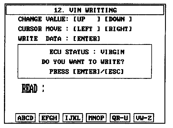 CAUTION: The programmed VIN cannot be changed. When writing the VIN, confirm the VIN carefully