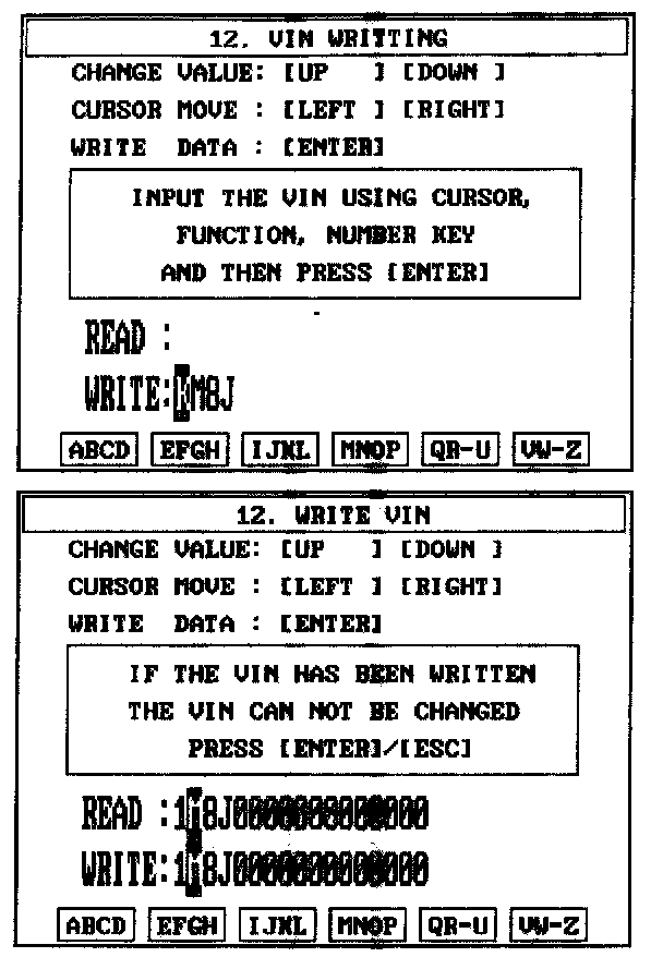 4. Write the VIN with cursor, function and number keys.
