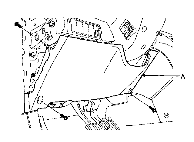 2. Remove the crash pad lower panel (A). Avoid damaging retaining clip.