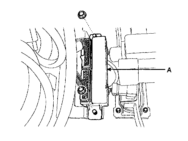 4. Remove the body control module (A) and tilt & telescope unit after loosening 2 nuts and disconnecting connector.