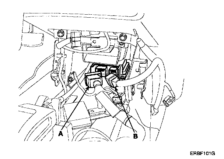 5. Disconnect the SRSCM harness connector (A) and (B) from the SRSCM.