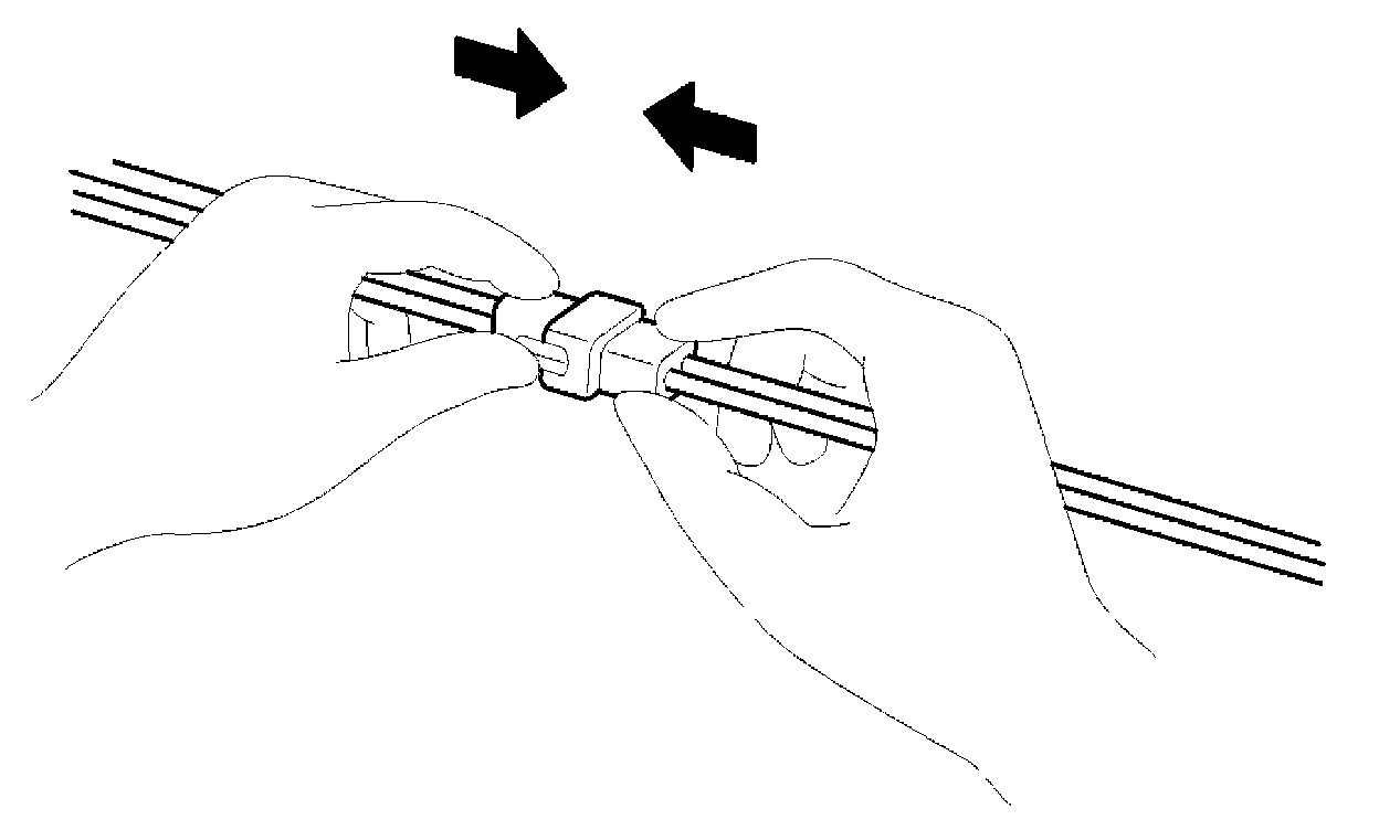 2. Attach the wiring harnesses with clamps so that there is no slack. However, for any harness which passes the engine or other vibrating parts of the vehicle, allow some slack within a range that does not allow the engine vibrations to cause the harness to come into contact with any of the surrounding parts and then secure the harness by using a clamp.