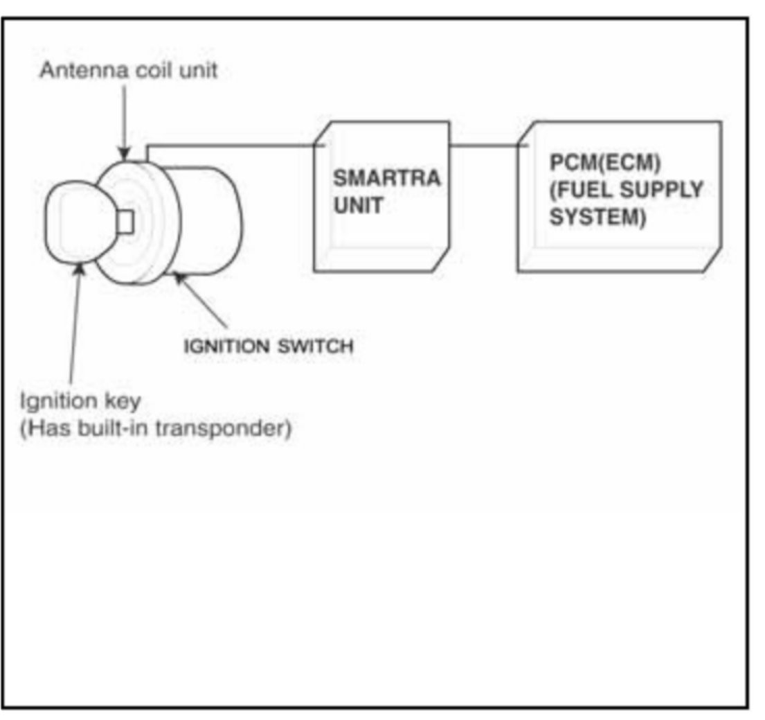 ^ The SMARTRA system consists of a transponder located in the ignition key, an antenna coil, a SMARTRA unit, an indicator light, and the PCM (ECM).