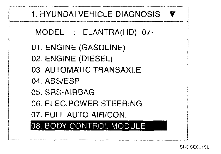 2. Select option "BODY CONTROL MODULE" and press ENTER.