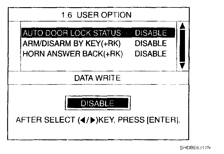 The BCM offers 4 items user option mode for a user convenience (AUTO DOOR LOCK, ARM/DISARM BY KEY, HORN ANSWER BACK)