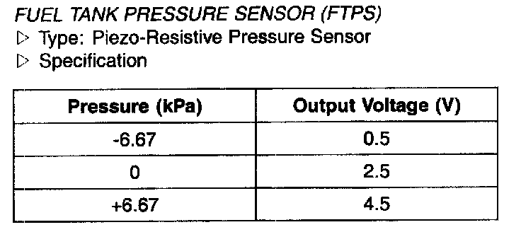 Fuel Tank Pressure Sensor (FTPS) - Specification: