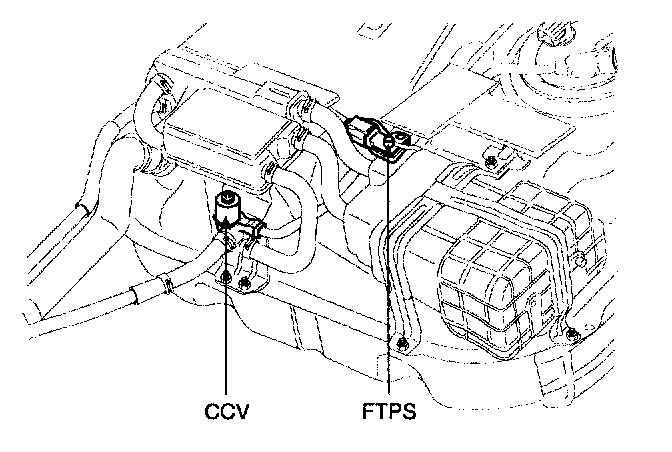 The evaporative emission control system prevents hydrocarbon vapors from escaping from the fuel tank into the atmosphere where they could form photochemical smog. Gasoline vapors are collected in the charcoal canister. The Fuel Tank Pressure Sensor (FTPS) is installed on the canister and is an integral part of the evaporative monitoring system. The PCM monitors the FTPS signal to detect vacuum decay and excess vacuum. The FTPS measures the difference between the air pressure inside the fuel tank and outside air pressure to check the purge control solenoid valve operation and for leak detection in the evaporative emission control system by monitoring pressure and vacuum levels in the fuel tank during the purge control solenoid valve operating cycles.