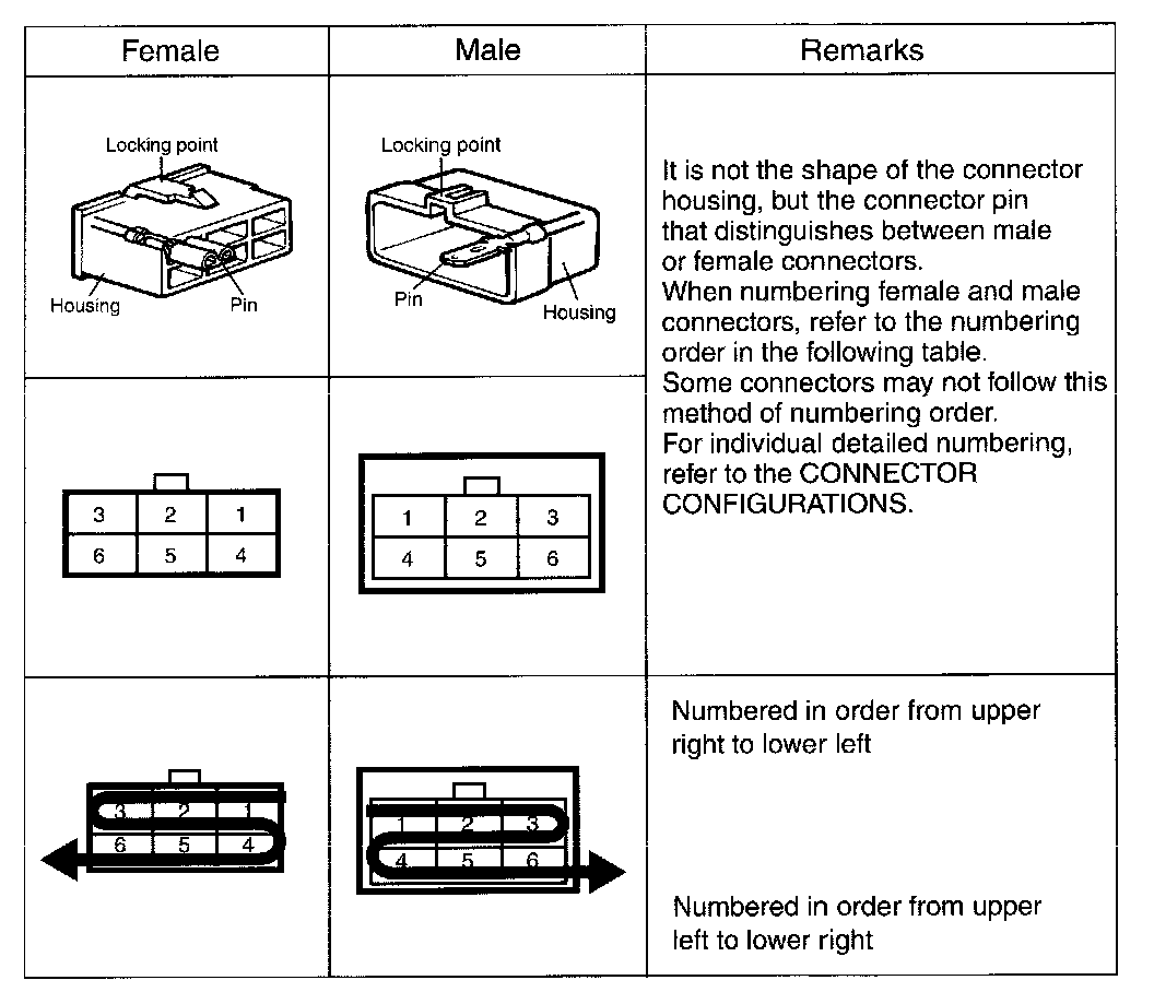 - It shows the front of the connector on the harness side when not to the harness connector. The terminal number on each connector can be obtained by following the pattern used in 05 connector view and numbering order. Unused terminals are marked with an asterisk (*).