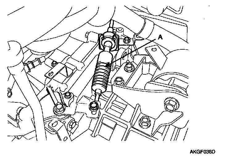 4. Install the control cable (A) to the manual control lever.
