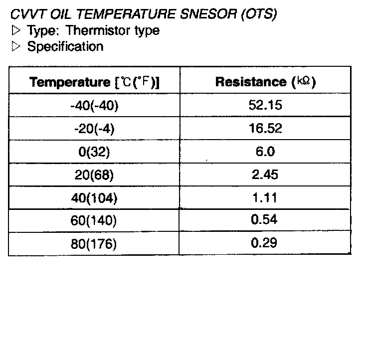 CVVT Oil Temperature Sensor (OTS) - Specification: