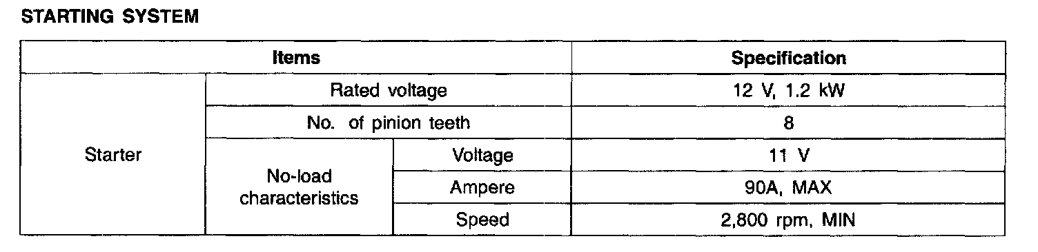Starting System - Specification: