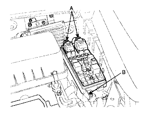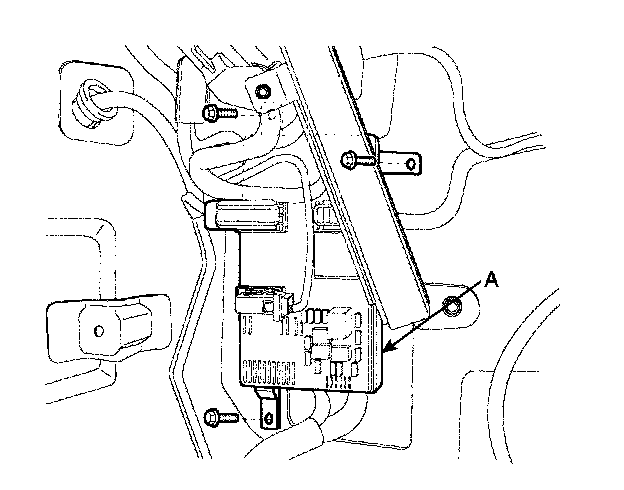 3. Remove the keyless antenna cable and IPM (Instrument Panel Module) (A) after loosening 3 nuts and disconnecting 5 connectors.