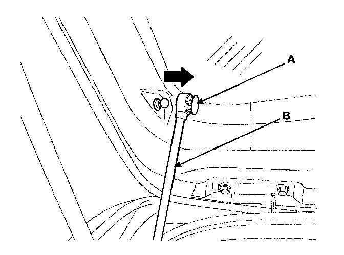 4. Use a small screw driver to loosen clip (A). But do not remove power tailgate push rod (B).