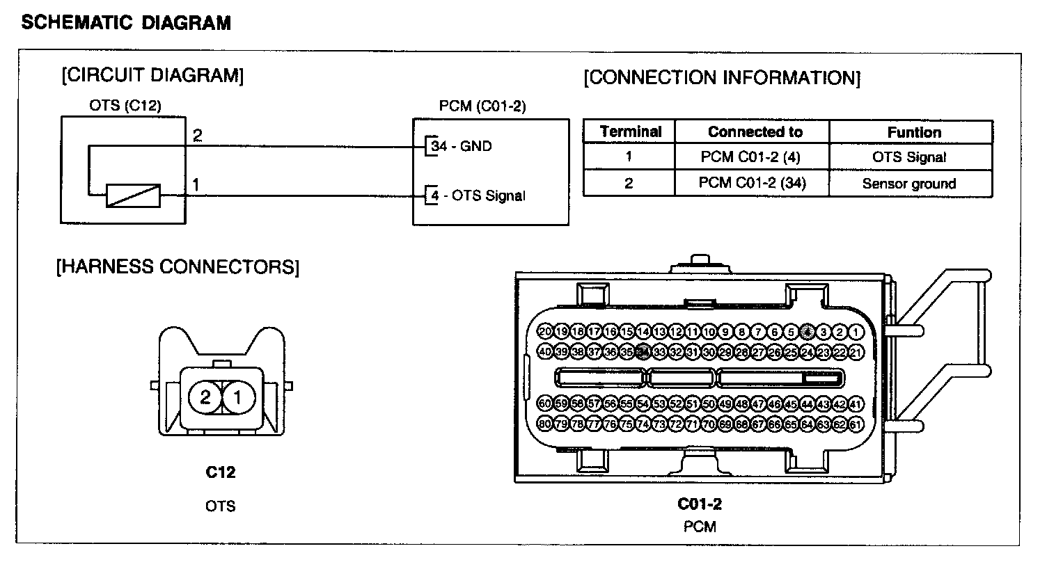 The CVVT Oil Temperature Sensor (OTS) is a negative co-efficient thermistor used by the PCM to measure engine oil temperature for the purpose of adjusting CVVT calculations.