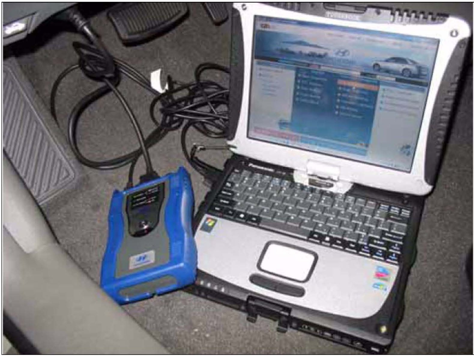 ^ Be careful not to disconnect any cables connected to the vehicle during reprogramming.