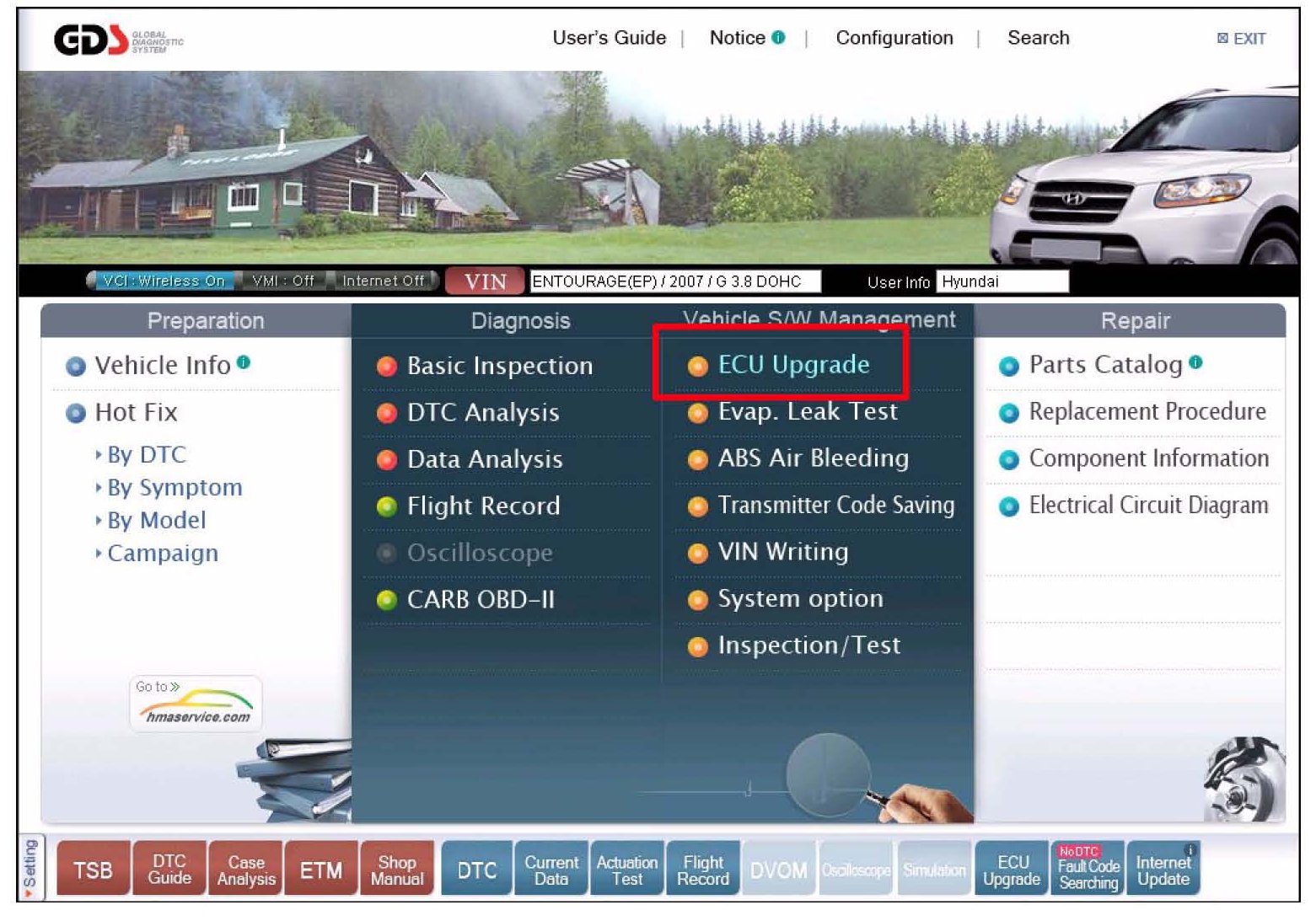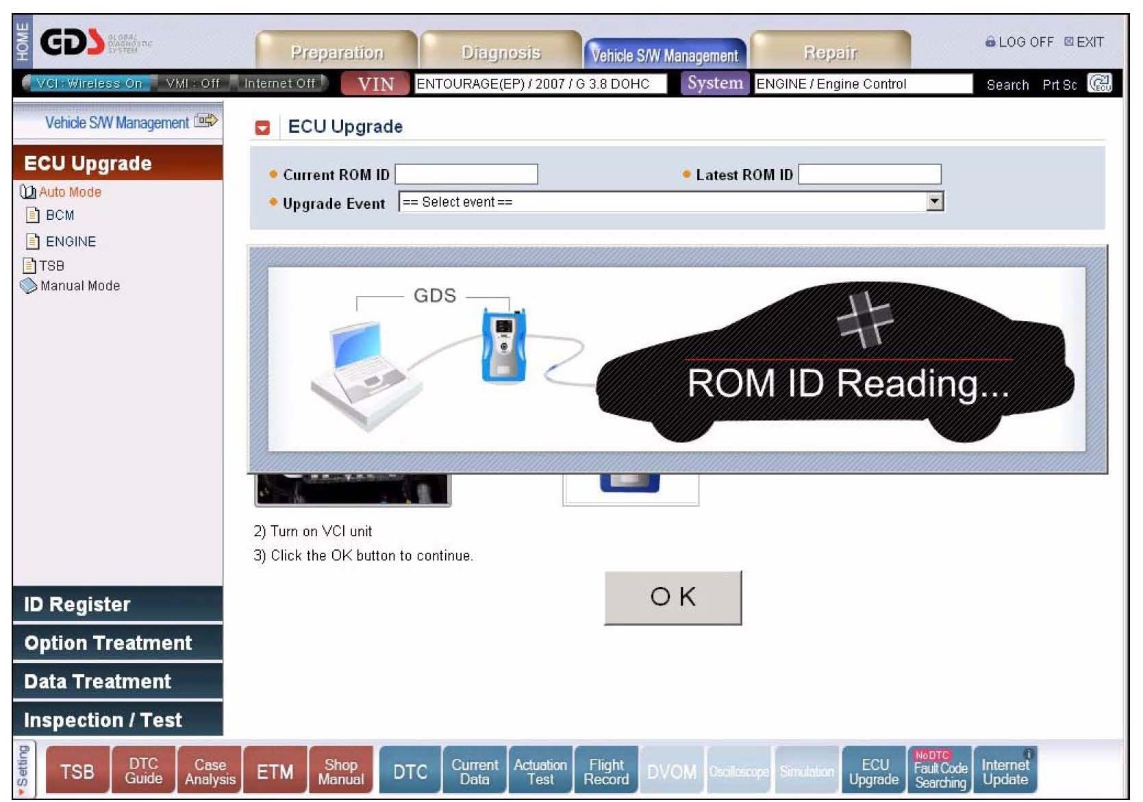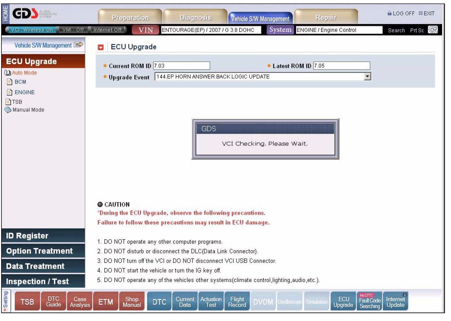 Home >> Hyundai >> 2007 >> Entourage V6-3.8L >> Repair and Diagnosis >> Relays and Modules >> Relays and Modules - Instrument Panel >> Instrument Panel Control Module >> Technical Service Bulletins >> Customer Interest >> Antitheft System - No Horn Chirp After IPM Replacement >> GDS ECU Software Reprogramming Procedure