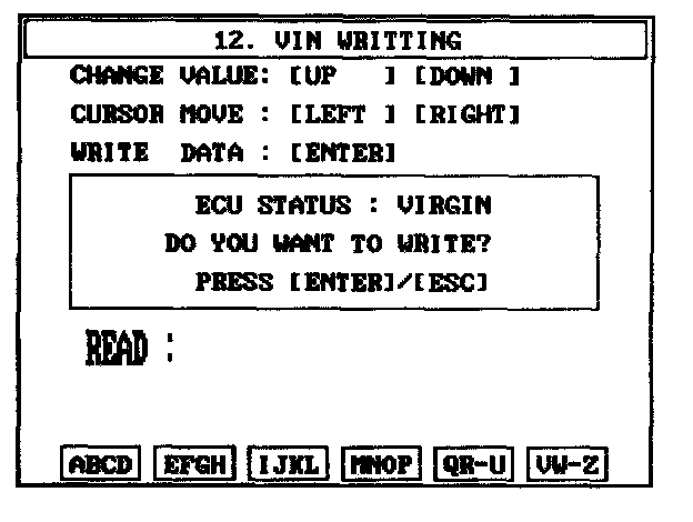 CAUTION: The programmed VIN cannot be changed. When writing the VIN, confirm the VIN carefully
