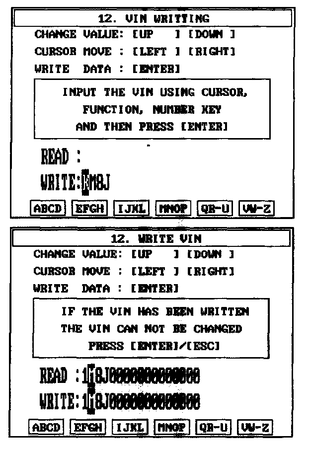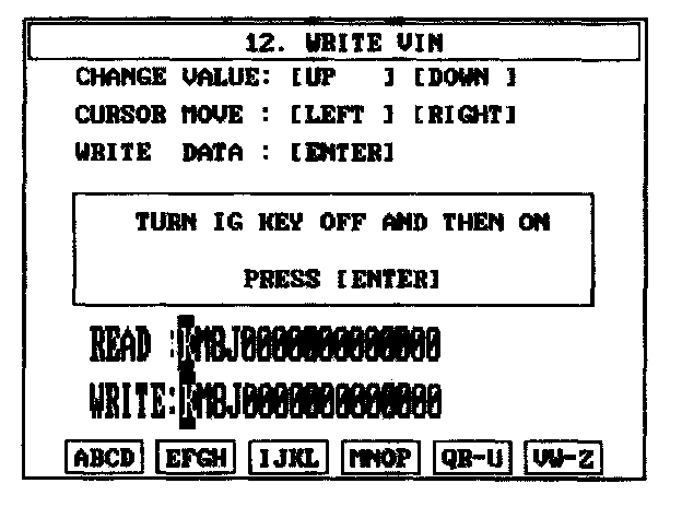 4. Write the VIN with cursor, function and number keys.