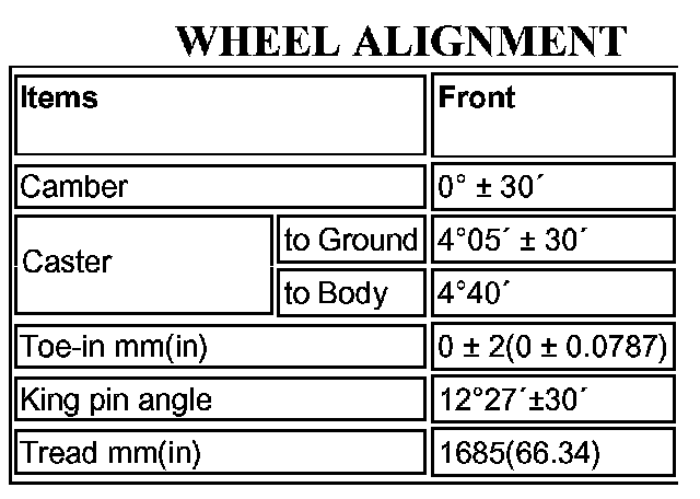 Front Wheel Alignment Specifications