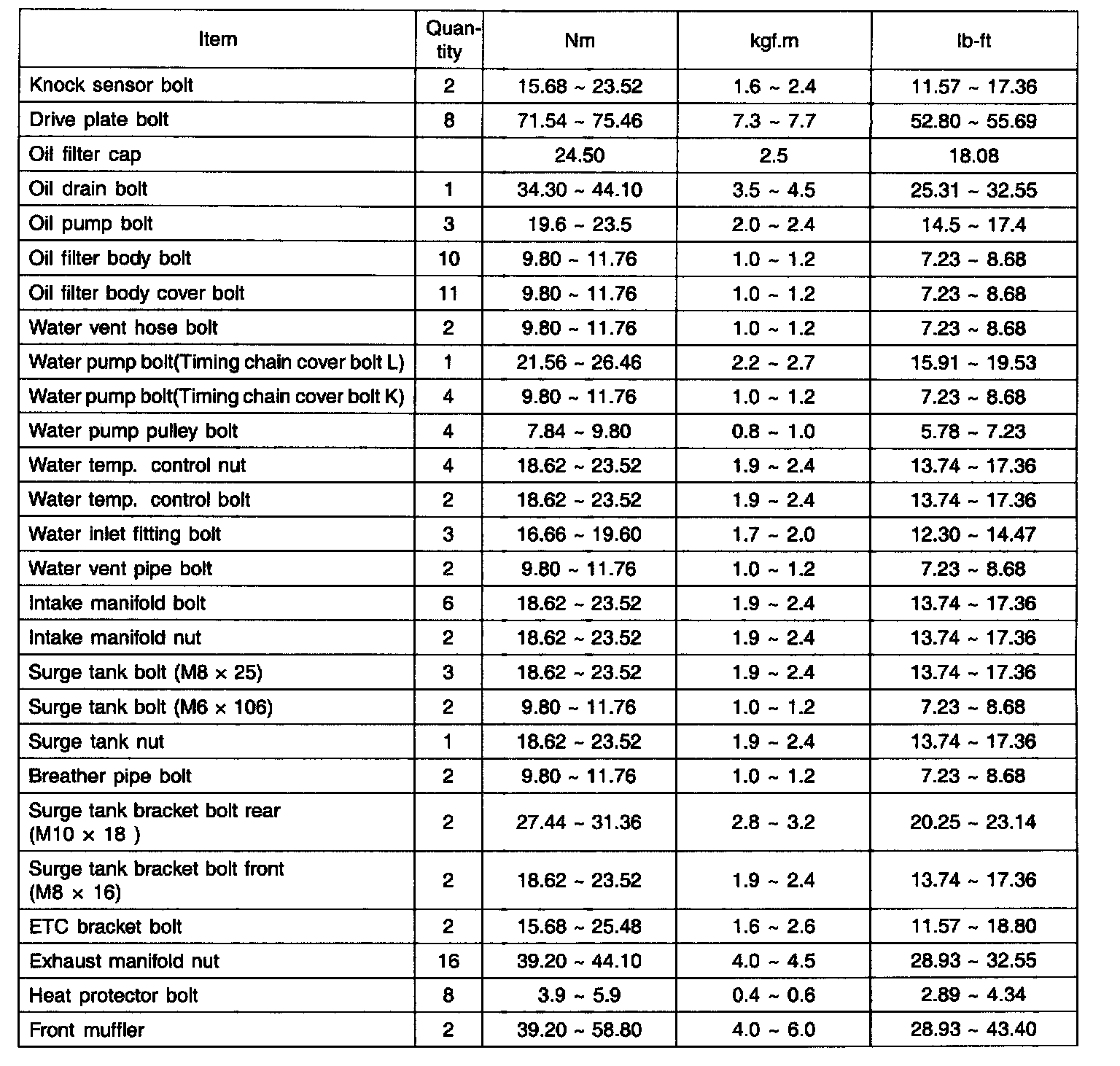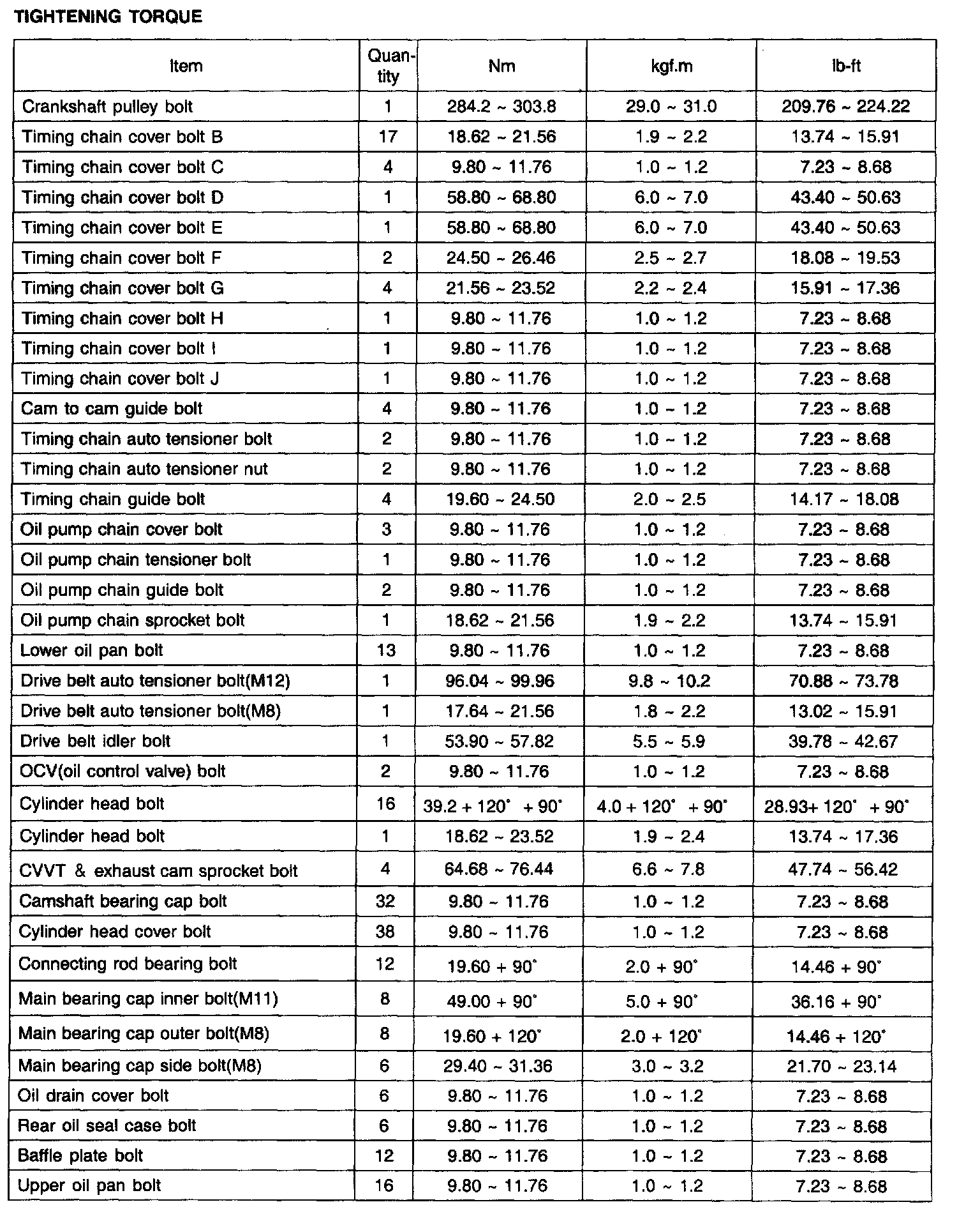 TIGHTENING TORQUE: