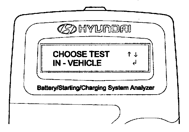 2. The tester will ask if the battery is connected "IN A VEHICLE" or "OUT OF A VEHICLE". Make your selection by pressing the arrow buttons; then press ENTER.