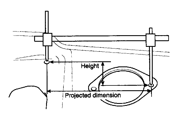 1. These are the dimensions measured when the measurement points are projected from the vehicle's surface, and are the reference dimensions used for used for body alterations.