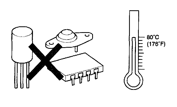 6. The electronic parts used in the computer, relays, etc. are readily damaged by heat. If there is a need for service operations that may cause the temperature to exceed 80 °C (176 °F), remove the electronic parts before hand.