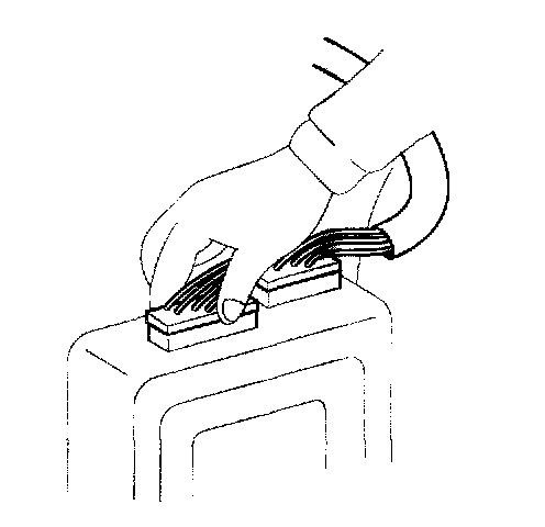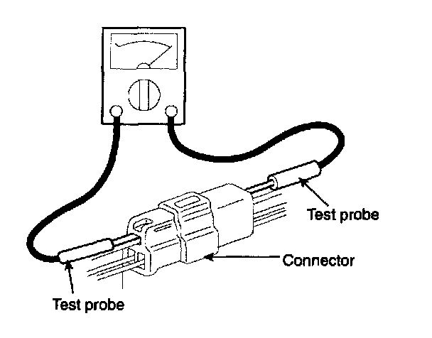 11. When using a circuit tester to check continuity or voltage on connector terminals, insert the test probe Into the harness side. If the connector is a sealed connector, insert the test probe through the hole in the rubber cap until contacts the terminal, being careful not to damage the insulation of the wires.