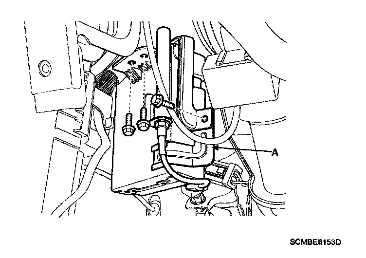 3. Remove the body control module (A) and antenna cable after loosening 3 bolts and disconnecting connector.