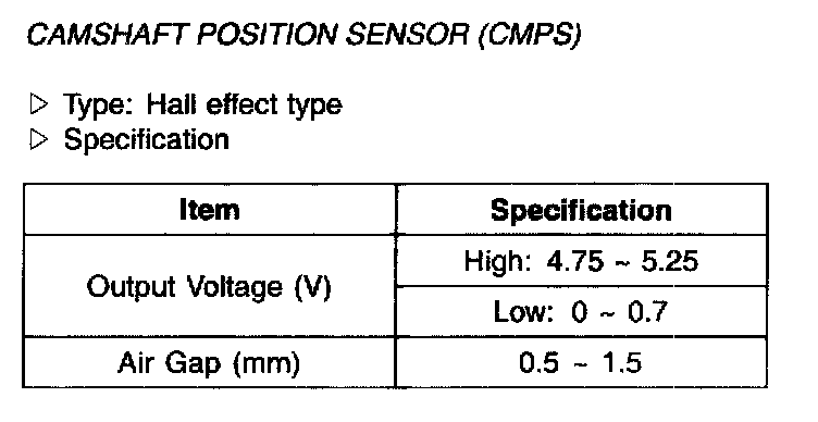 Camshaft Position Sensor(CMPS) - Specification: