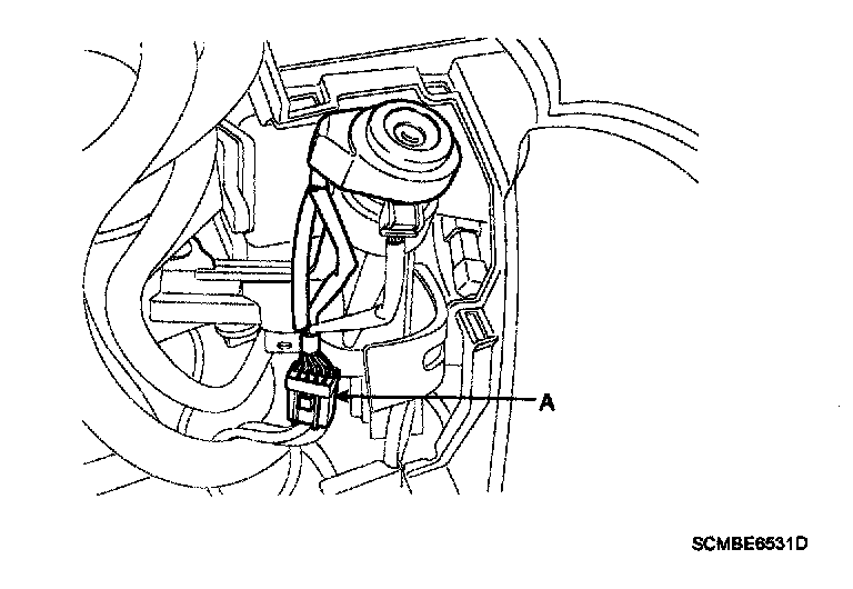 3. Remove the ignition switch (A) after loosening the screw with IG ON and disconnecting the 6P connector.