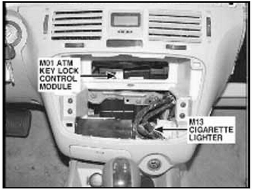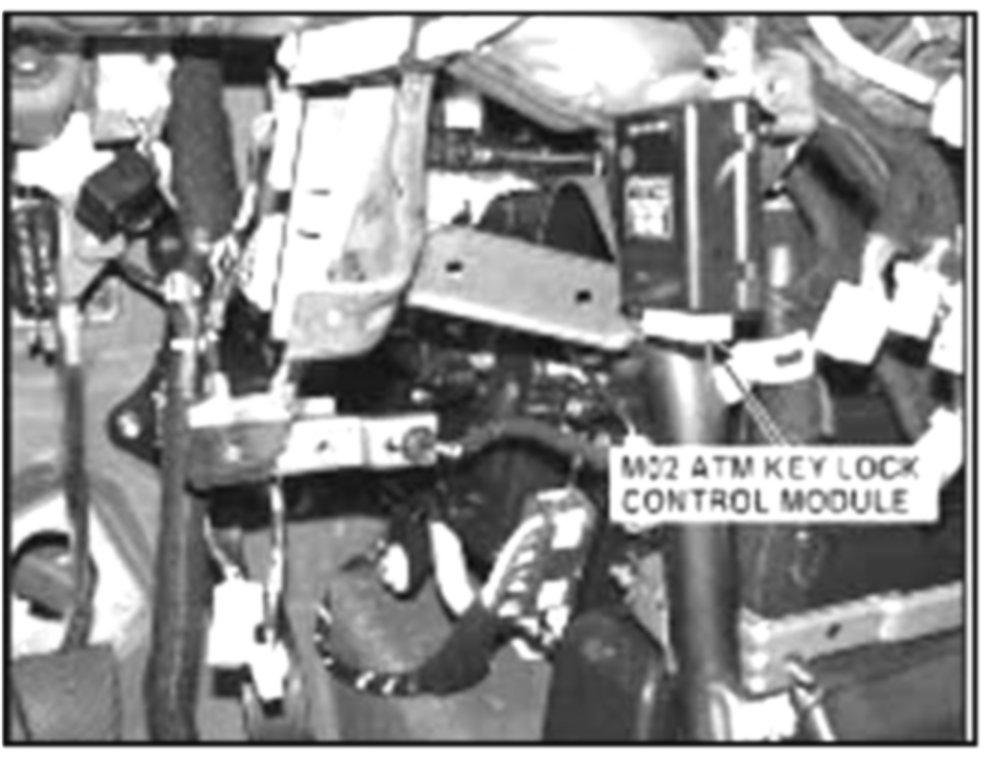 ^ Remove the two nuts and disconnect the M76 connector to the ATM key lock control module. Go to "Test Procedure".