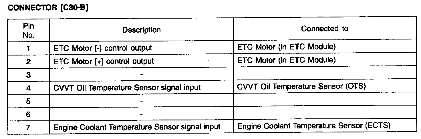 PCM Terminal Function - Connector (C30-B) Part 1: