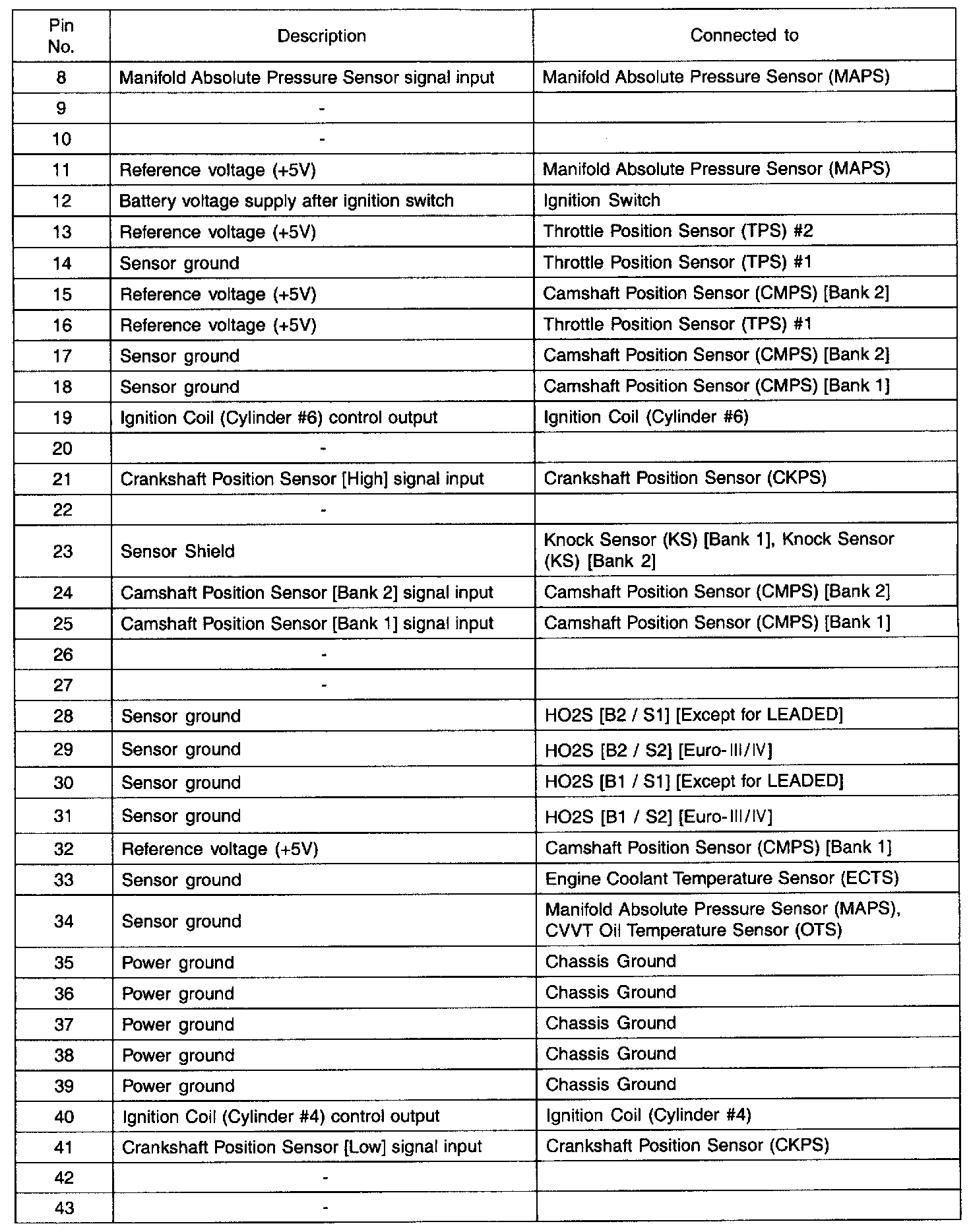 PCM Terminal Function - Connector (C30-A) Part 1: