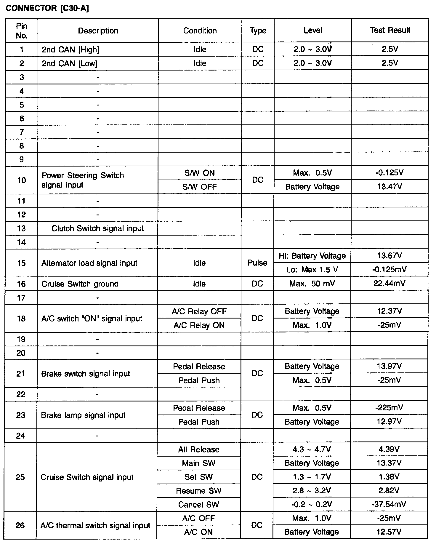 PCM TERMINAL INPUT/OUTPUT SIGNAL - CONNECTOR [C30-A]